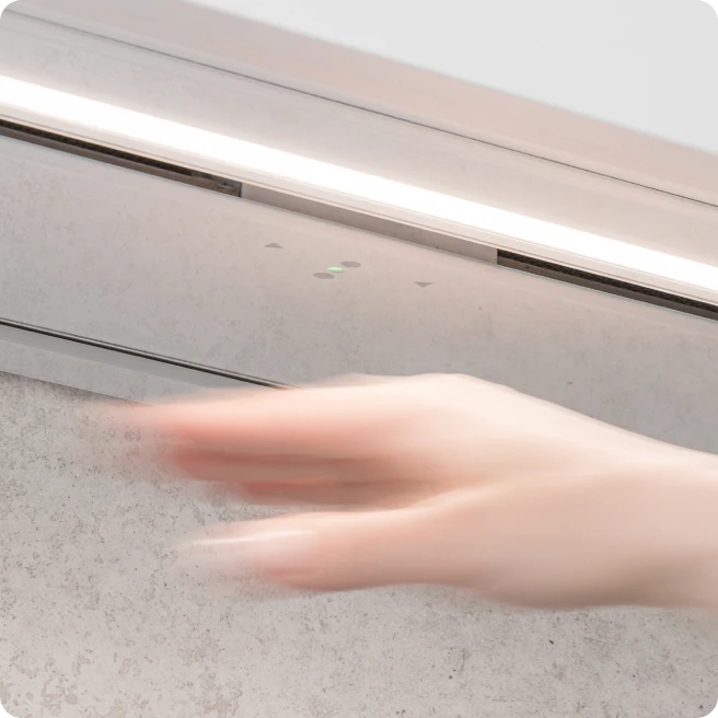 Dzięki czujnikom ruchu dłoni możesz w prosty sposób włączyć lub wyłączyć okap, zmienić moc pracy albo sterować oświetleniem - bez konieczności naciskania przycisków. Wystarczy jeden gest, by wygodnie kontrolować urządzenie i utrzymać panel w czystości.