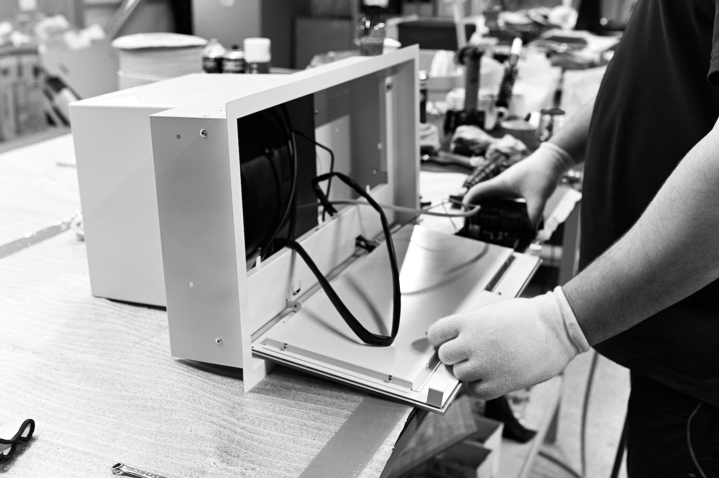 Na naszych liniach montażowych zaawansowana automatyzacja wspiera doświadczone zespoły specjalistów. Szczególną uwagę poświęcamy sercu każdego okapu – silnikowi. Montujemy i wyważamy go z najwyższą starannością, bo to od niego zależy cicha i wydajna praca przez długie lata.